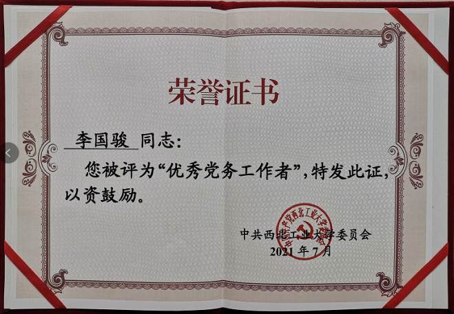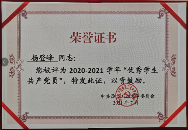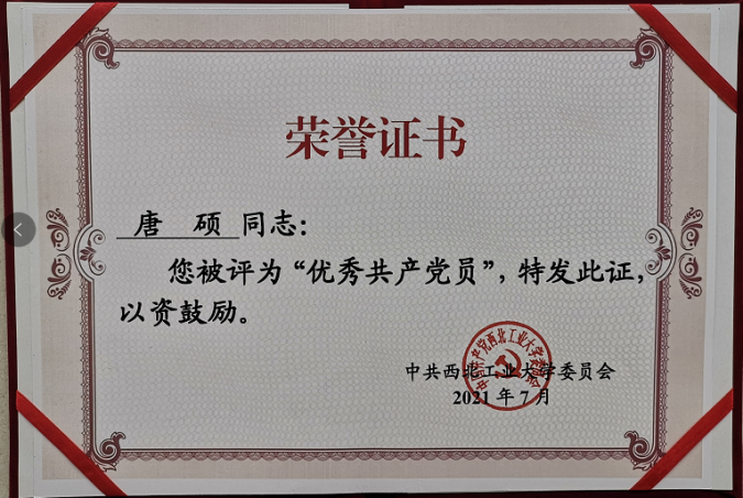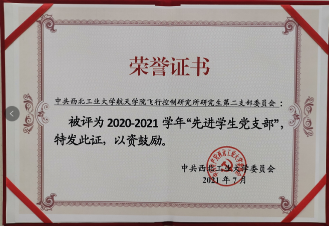 在庆祝中国共产党成立100周年之际,best365官方网站登录入口党委获评陕西省先进基层党组织荣誉称号。在学校“两优一先”评选表彰中,学院党委获评先进基层党组织、学院获评学生党建先进学院,唐硕获优秀共产党员、李国骏获优秀党务工作者、飞行控制研究所研究生第二党支部获先进学生党支部、朱远和杨登峰获优秀学生共产党员等荣誉称号。