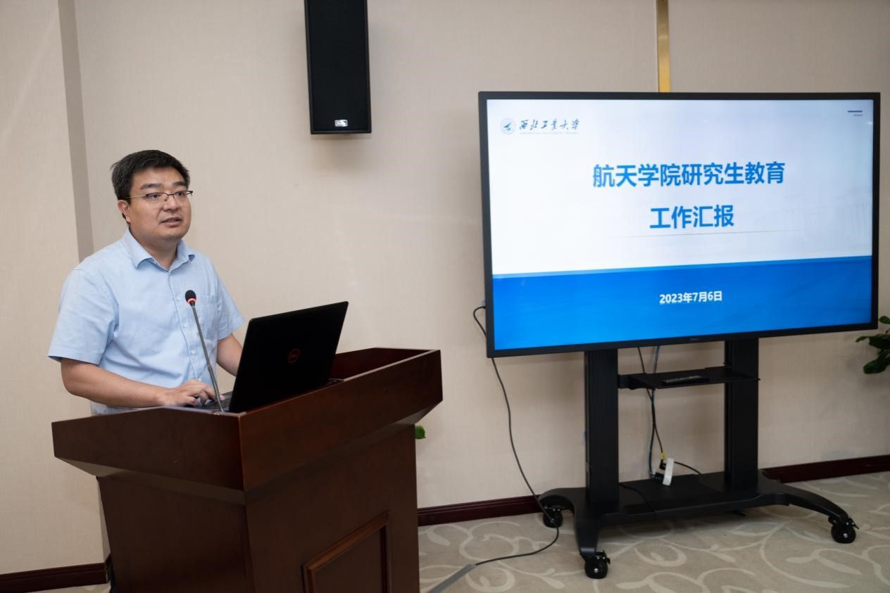 学院副院长宁昕围绕研究生招生、培养、学位全过程,汇报了研究生教育工作现状。他指出,目前航天科技“总师型”人才培养模式中科研实践、创新创业、综合素养训练有待加强,课程体系中本研衔接课程架构需要进一步完善,导师岗位胜任能力需进一步提升。针对以上问题,他提出多项工作举措和思路,要“坚持‘飞天班’培养试点改革,优化本研衔接课程体系”,要“重实践、厚训练、强氛围”,要“不断提升导师岗位胜任能力,严把学位论文质量关”等。