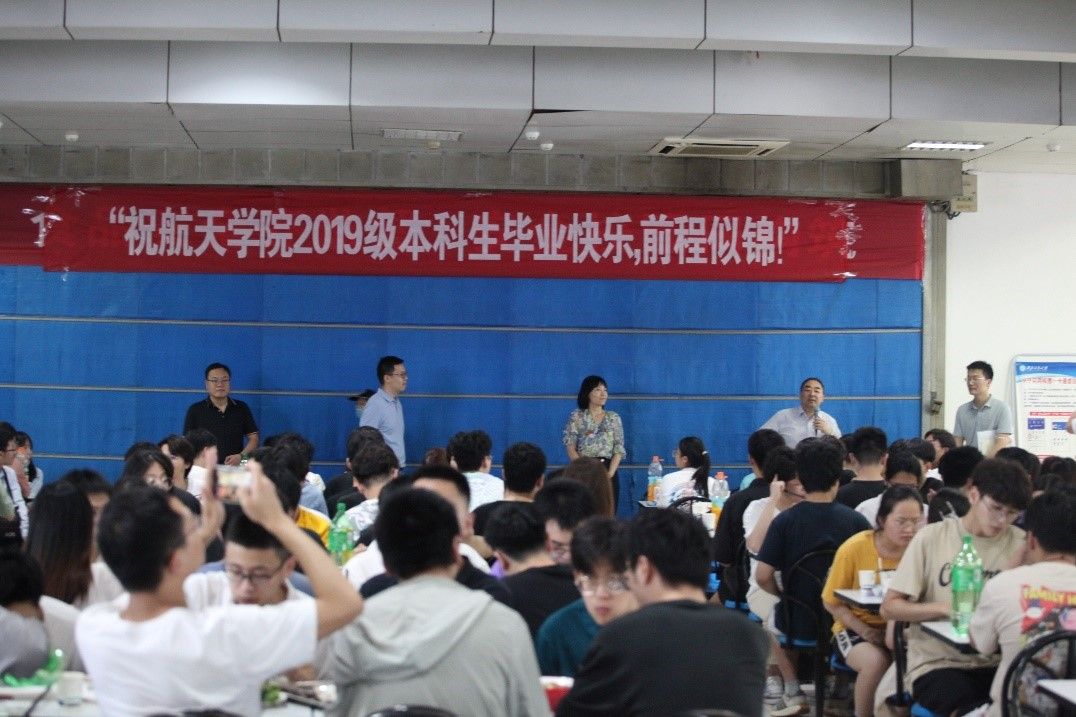 座谈会圆满结束后,best365官方网站登录入口2019级全体师生欢聚一堂,举行了毕业聚餐。在这个特殊的时刻里,岳晓奎院长代表学院全体教师向best365官方网站登录入口2019级本科生表示了最诚挚的祝福和感谢:“你们是best365官方网站登录入口的骄傲,你们用勤奋和智慧书写了属于自己的精彩篇章。希望你们毕业后继续保持对航天事业的热爱和追求,祝你们毕业快乐,前程似锦!”