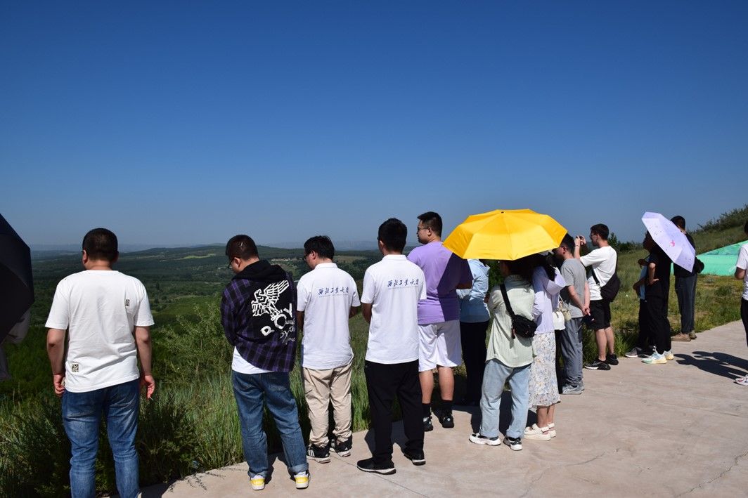 17日上午,实践队在右玉干部学院、县委组织部、县工信局、县委人才服务中心相关同志的陪同下首先参观了右玉县四五道岭生态园区。在到达四五道岭后,实践队员们看到了如今坐落在一片“绿色海洋”中的右玉县城。