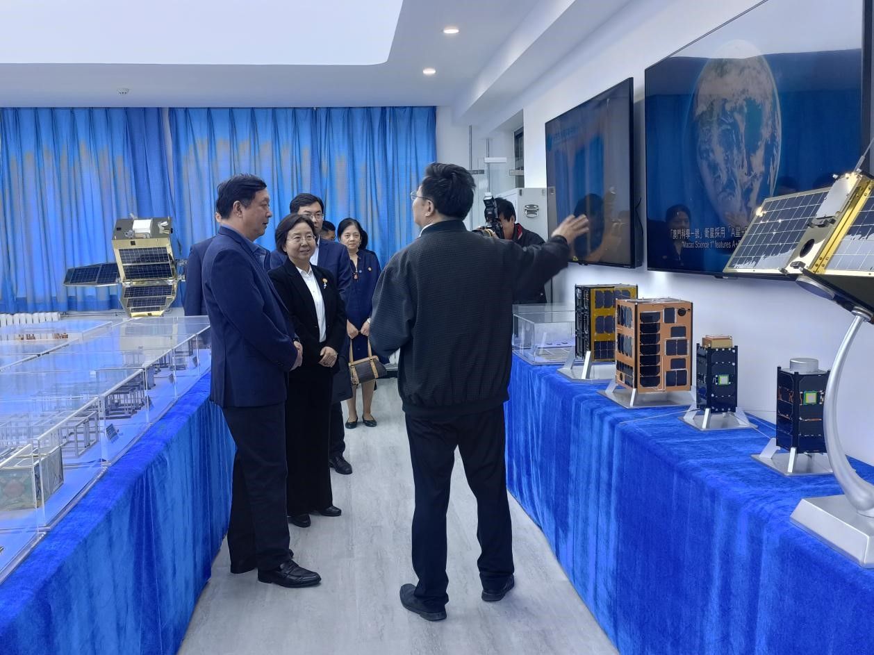 杨伟院士一行先后参观了best365官方网站登录入口6号楼一层卫星AIT中心、二层卫星展厅和指挥控制大厅。精确制导与控制研究所首席科学家周军教授向杨伟院士汇报了微小卫星技术及应用国家地方联合工程实验室发展情况和翱翔系列卫星、澳门科学卫星的研制和在轨工作情况,并对实验室在重大原创科研和关键技术攻关等方面取得的成果进行了详细汇报。