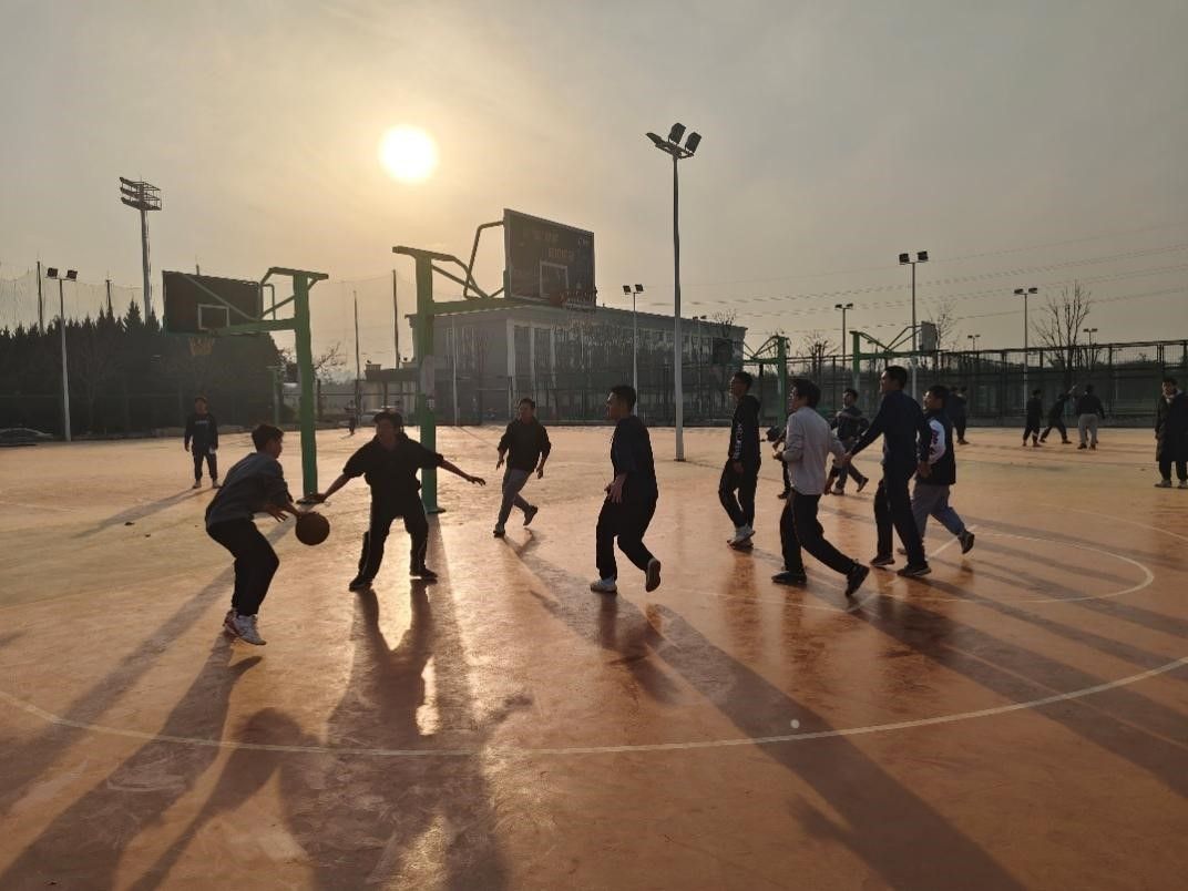 在篮球场上,17班与飞天班、15班联队之间展开了激烈角逐。队员紧密配合、默契传球、迅速进攻、严密防守、精准投篮……两队队员全力拼搏,整个比赛过程紧张又热烈。