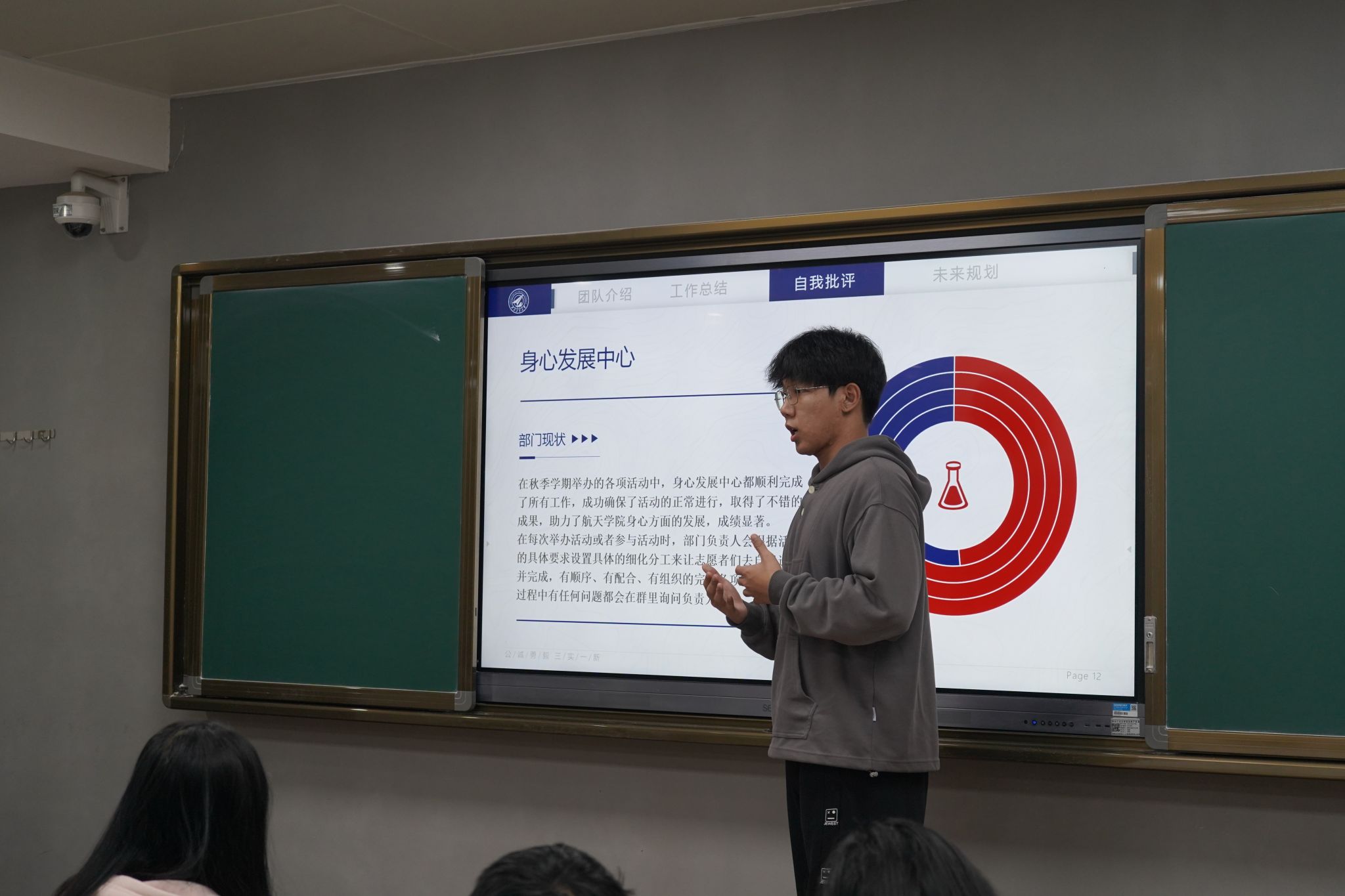 图为best365官方网站登录入口学生会主席团成员刘洋进行工作汇报
