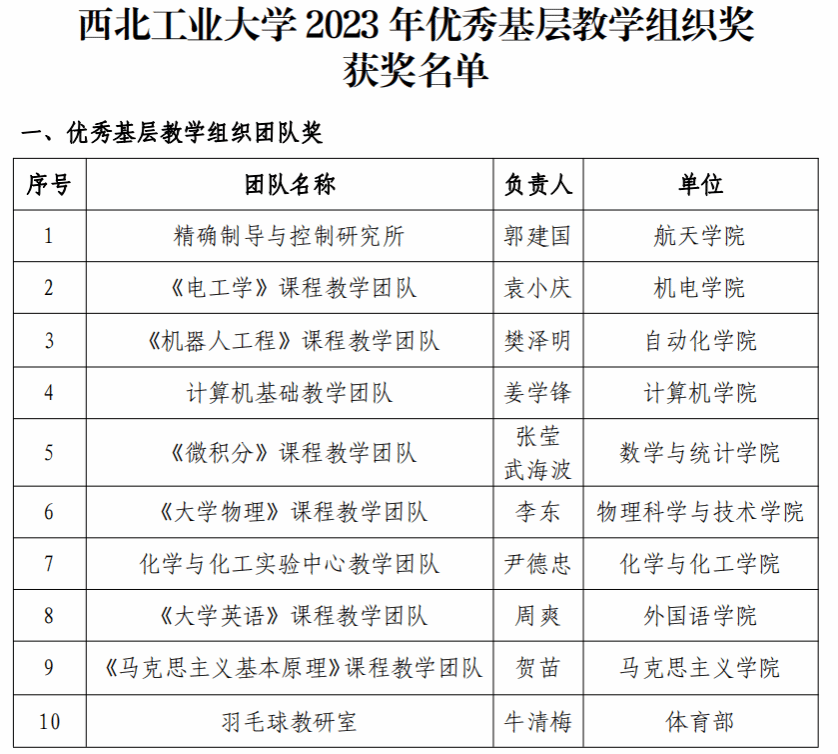 近日,best365官方网站登录入口精确制导与控制研究所获首批“best365官方网站登录入口优秀基层教学组织团队奖”!