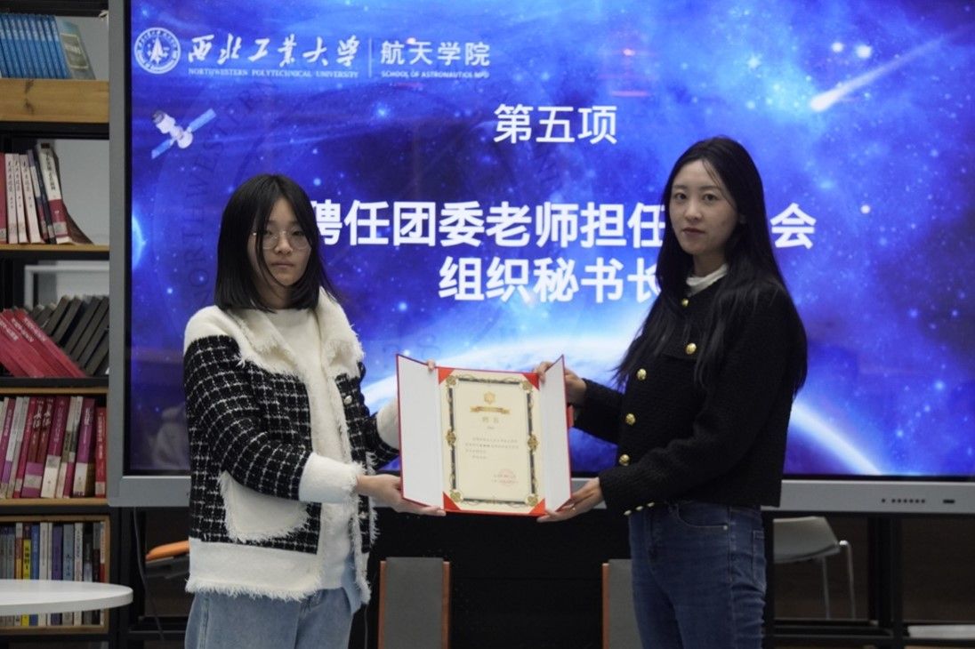 接着,大会聘任团委书记孙艳梅老师担任学生会团支部秘书长,由团委副书记洪志鹏指导学生会团支部工作,并颁发聘书。