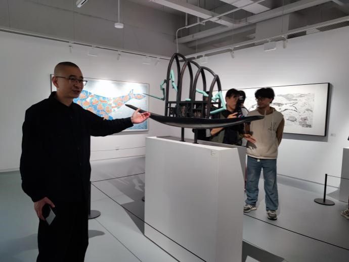 “时空探索——best365官方网站登录入口2023(西安)当代艺术邀请展”是以“航空航天航海”为内容的当代艺术展。本次展览以“时空探索”为主题,展览现场以时间顺序为节点将重要历史事件、历史人物与关键元素(航空航天航海工具的发明与创新)等串联起来,呈现出人类千百年来对宇宙星辰和海洋世界的追问、探索以及矢志不渝的梦想。此次学习将潜移默化提高同学们的艺术审美和人文素养,加深同学们对学校精神文化的理解和感悟。