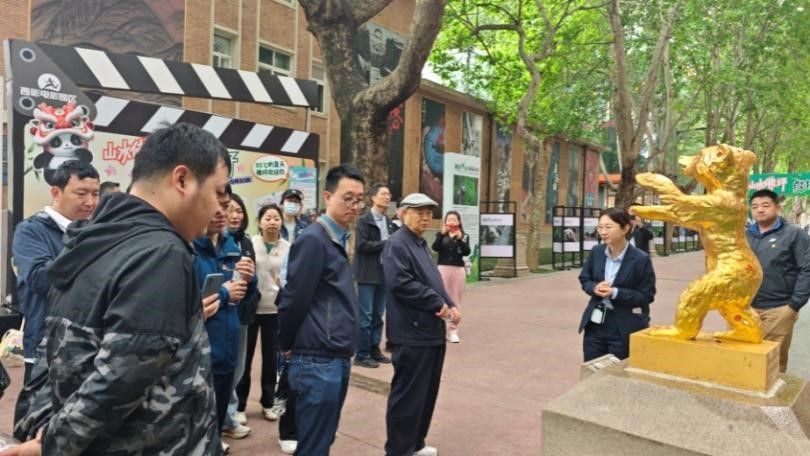 师生们在讲解员的带领下先后参观了西影星光大道、电影广场。星光大道两侧陈设了中国电影所获得的杰出奖项,一座座奖杯铭记了西影人艰苦奋斗、勇于创新的光荣历史。电影广场下的时光胶囊,书写着老一辈电影人对未来的寄托,师生们深入了解到中国电影事业在党的领导下的快速发展与西影厂的成长历程。