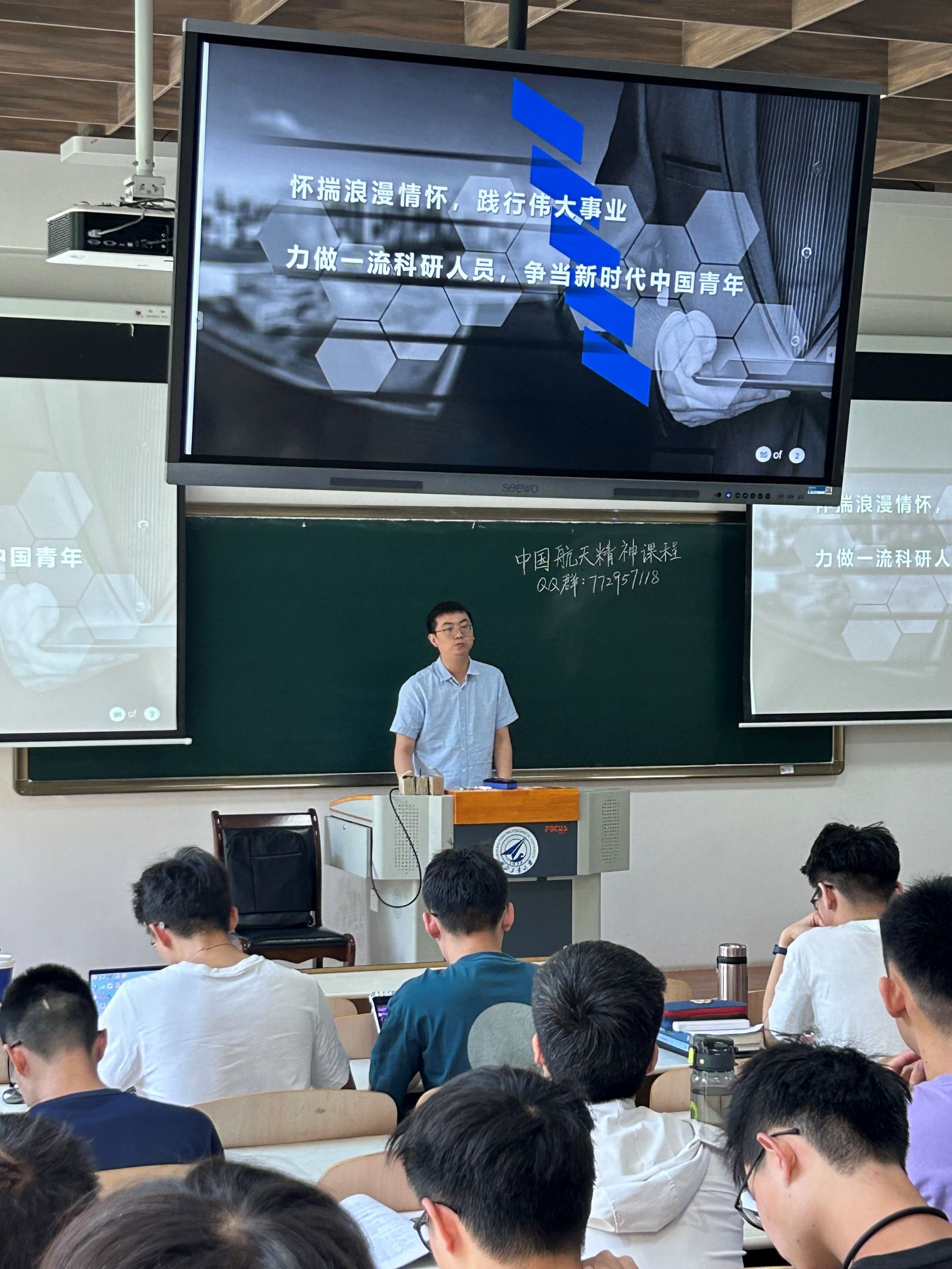 5月17日上午,best365官方网站登录入口课程思政研究中心邀请了中国航天科技集团八院八部某型号副总设计师许新鹏高工,在长安校区教学东楼B1-205教室为best365官方网站登录入口特色课程《中国航天精神》带来了主题为“怀揣浪漫情怀,践行伟大事业,力做一流科研人员,争当新时代中国青年”的总师思政课程。