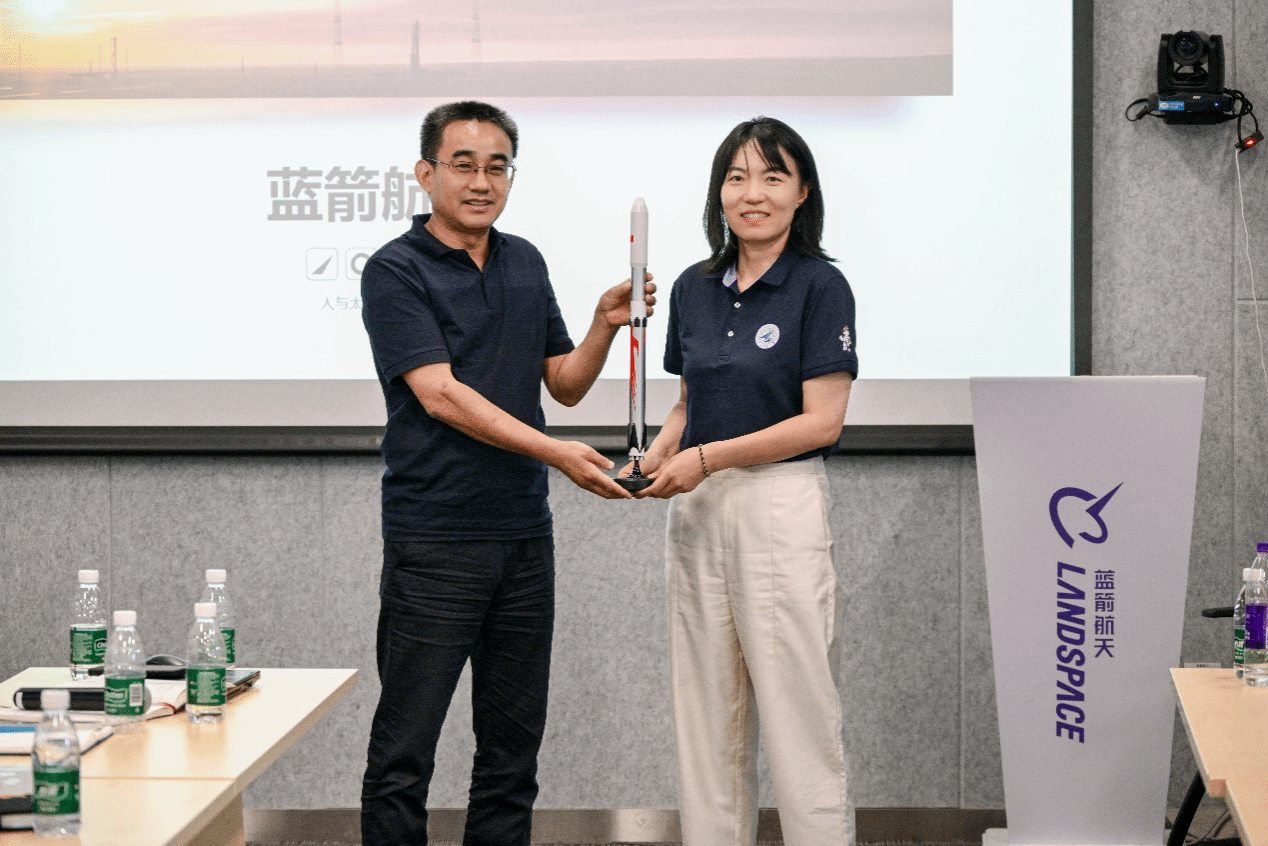 最后,蓝箭航天向best365官方网站登录入口赠送了“朱雀3号”火箭模型,双方单位进行了大学生社会实践基地挂牌仪式。