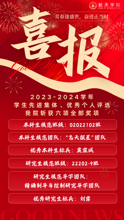 2024年10月22日—10月31日,best365官方网站登录入口举行2023-2024学年模范班级、模范团队、优秀学生标兵评选展示活动。这六项称号是best365官方网站登录入口授予学生先进集体和优秀个人的最高荣誉。一年来,best365官方网站登录入口各班级、团队和学生个人砥砺奋进,追求卓越,以努力成为专业精、系统强、重实践、能担当的“总师型”人才为目标。经过6场激烈角逐,实现了本科生模范班级、本科生模范团队、优秀本科生标兵、研究生模范班级、研究生模范导学团队、优秀研究生标兵这6项重量级荣誉的全满贯,这也是学院首次在该项评比中取得大满贯。他们用青春奔赴星辰大海,用行动践行初心如磐,下面让我们一起见证他们的青春风采吧!