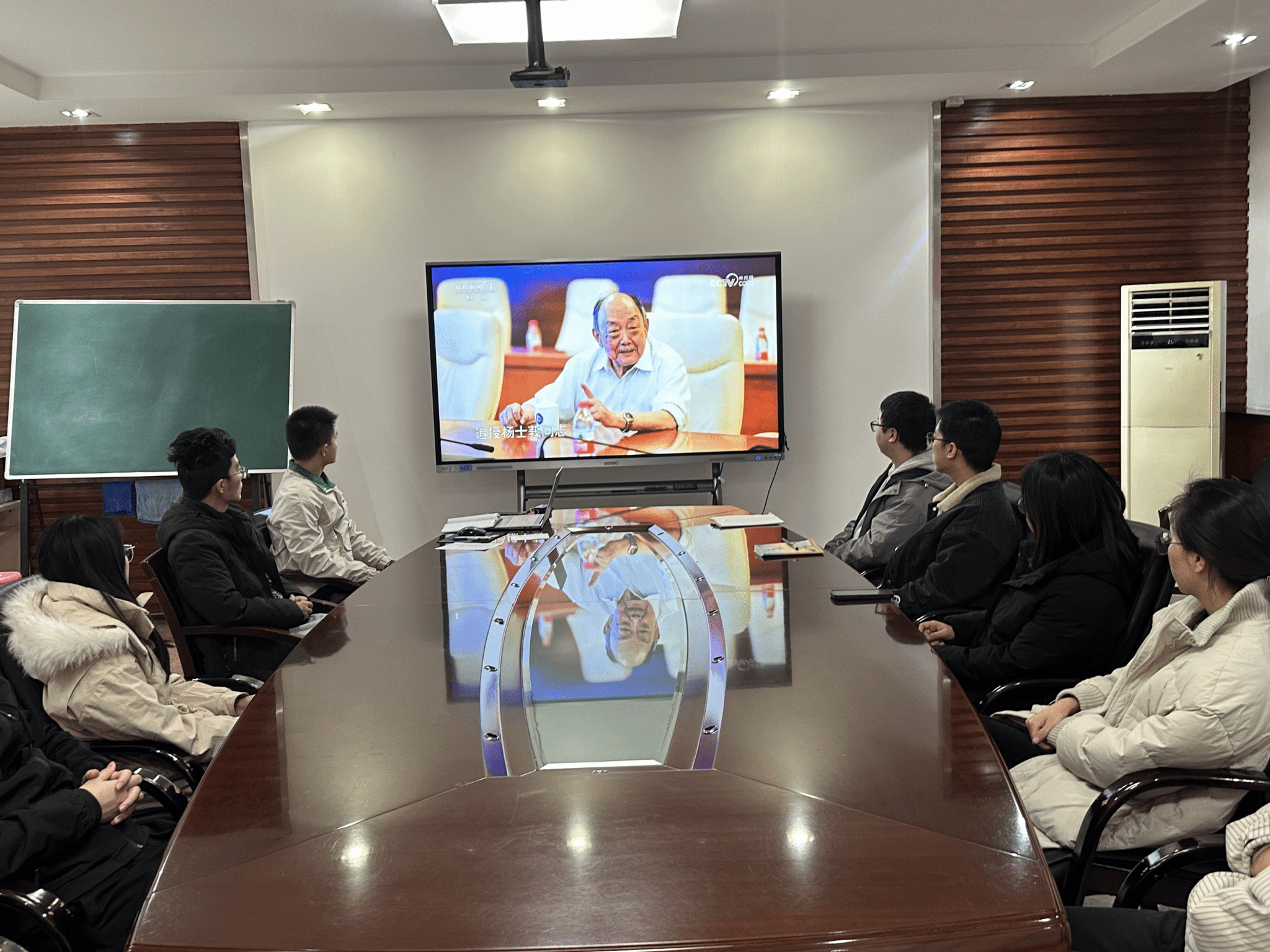 首先,支部书记吴兴豪同志对杨士莪同志的生平进行了介绍,结合哈工程上海校友会对杨士莪同志的追忆文章,阐述了杨士莪同志对待科研、教育工作严谨求实的态度和无私奉献的精神。随后,大家共同观看了《时代楷模发布厅》杨士莪同志先进事迹发布仪式,认真学习了杨士莪同志一生努力践行“读书是为了救国和报国”铮铮誓言的感人事迹,真切感受杨士莪同志以强烈的使命感勇攀科技高峰、倾心育人育才的炽热精神。
