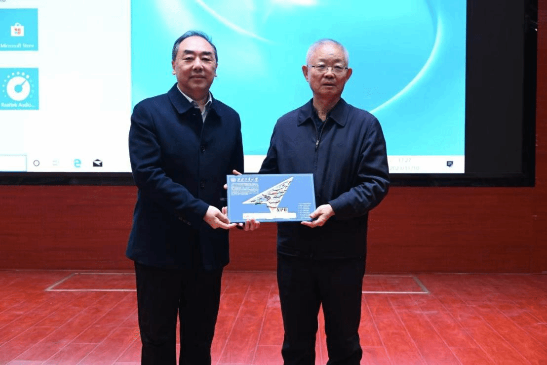 活动尾声,岳晓奎副校长代表学校向于志坚总师赠送了学校总师徽章纪念品,并鼓励同学们以总师为榜样,不断磨练自身能力,为航天强国建设贡献力量。