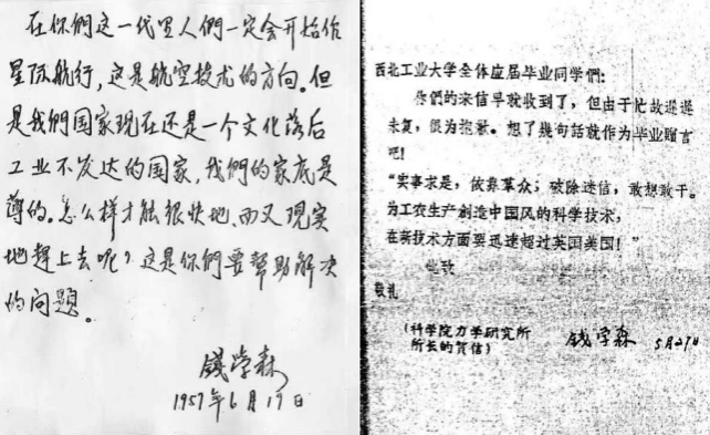 图|钱学森分别在1957年和1958年给best365官方网站登录入口师生的致辞