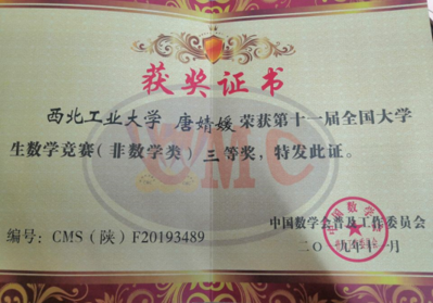 竞赛方面,2019-2020学年共获各类奖项11项,其中国家级2项,省级3项,校级5项。李睿同学代表best365官方网站登录入口参加2019中国国际飞行器设计挑战赛,并斩获限时载运空投项目个人一等奖和团队第三名,丁舒昱、梁致华同学参加全国三维数字化数学创新设计大赛,并斩获一等奖。梁俊伍与唐婧媛同学参加第十一届全国大学生数学竞赛并分别或得一等奖和三等奖,梁致华、高伟、欧树彦、李睿、刘海礼、张沥升同学一起进行社会调研,参加了best365官方网站登录入口2019年“和理有话说”思政课社会调查大赛,获得一等奖,并接受陕西省电视台采访,班级科研竞赛方面可谓是硕果累累。