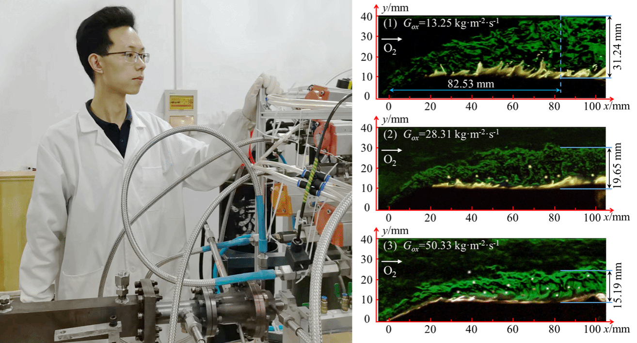 博士学位论文研究期间针对固液混合火箭发动机中含石蜡燃料在氧化剂流剪切作用下的燃面退移驱动机制不明问题,通过可视化燃烧诊断实验开展了边界层燃烧特性研究,基于湍流边界层理论和和吹扫效应阐明了边界层燃烧与燃面退移间的耦合机制与数理关系,在揭示燃面退移驱动机制的基础上建立了复杂流动条件下燃面退移速率模型,并据此通过流动与燃烧组织优化实现了燃面退移速率约3.7倍有效提升。在此期间,发表学术论文10余篇,其中以第一作者发表学术论文7篇,其中SCI一区Top论文2篇、SCI二区论文1篇、SCI四区1篇,EI论文2篇,申请国家发明专利13项,已授权10项。