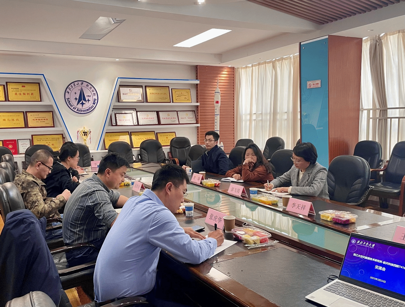 当日下午2点,交流会议准时在学院4号楼413会议室拉开帷幕。会议伊始,空天能源技术研究所所长对研究所的整体架构、科研实力及过往成果进行了详细介绍,为后续的深入交流奠定了基础。紧接着,聂洪奇与李阳分别分享了各自在相关领域的研究方向与最新进展,其丰富的研究经验与前沿的学术观点引发了与会人员的浓厚兴趣。