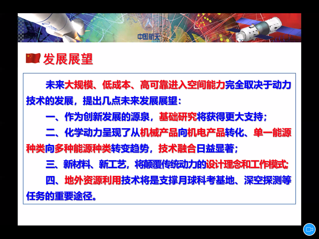 谭永华从航天发展现状、中国航天成就、未来发展展望、航天六院液体动力四个方面进行了详细的报告。他指出航天技术成为当今世界高科技群体中最具影响力和挑战性的科技领域之一,并越来越广泛地影响到人类活动。回忆中国航天的发展,在几代航天人60余年的不懈努力下,通过自力更生、艰苦奋斗、顽强拼搏,中国航天人取得了“两弹一星”、“载人航天”、“嫦娥奔月”等举世瞩目的辉煌成就。