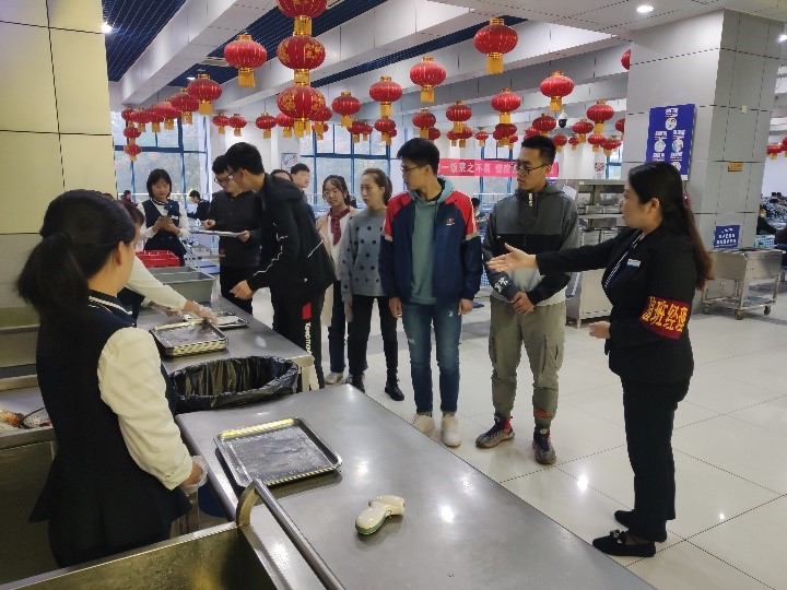 面食窗口的参观令大家感触颇深:“每一份扯面为三两,四份扯面为一碗,每天卖出一百多碗并且要保证不能有剩余的原材料”是主厨师傅心中的一杆天秤。师傅们也在日常的工作中,将节俭融入到工作的各种微小环节中,践行着节约的美德。调研结束后,同学们点了自己喜欢的饭菜,进行了此次团日活动的最后一次光盘打卡!