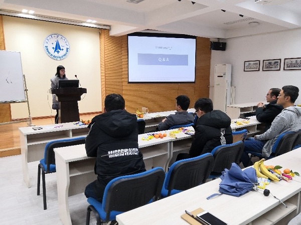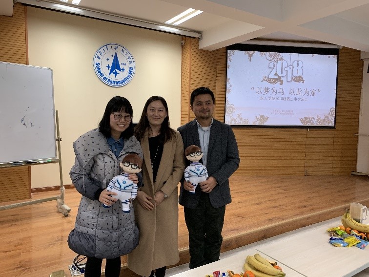 在科研经验分享环节,严启龙教授和国家奖学金获得者赵亚坤同学分别做主题分享。严启龙首先就如何对待横向课题、感情生活等问题分享了自己的经历和见解,勉励博士同学要增强解决现实困难的能力,敢于担当,善于从生活中汲取力量,获得科研上的精神支撑。在谈到如何做好科研问题时,他结合自己的国内外求学和工作经历,从找准专业定位、合理安排时间、掌握科研方法、搭建论文思路和处理人际关系等五个方面细述了自己做科研的宝贵经验和方法。赵亚坤同学从自身实际角度出发,介绍了过去四年博士生涯的科研经历和心路历程,以及一些十分有用的科研工具,她鼓励大家要时刻保持良好的心态,尤其在刚入学尚无科研成果的时候,更要保持耐心,夯实基础,给自己多一些积淀。分享会结束后,常威威副书记向严启龙和赵亚坤赠送了学院吉祥物“航小天”,并代表学院对两位的精彩分享表示感谢。