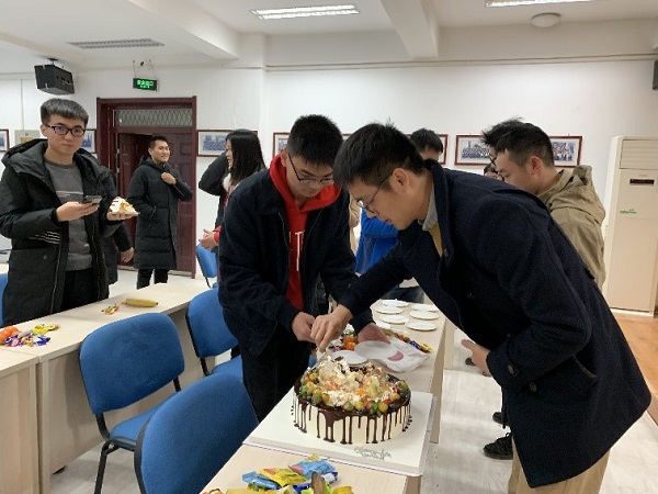 特别的是,学院研究生会为两位近期过生日的陈昊和杨洋博士准备了一场别开生面的生日惊喜,疑似放映错误的幻灯片,突然弹出的祝福视频,随生日歌缓缓呈上的生日蛋糕,让现场的同学感到意外和惊喜,伴着老师和同学的祝福,两位“寿星”许下了新一岁的愿望。