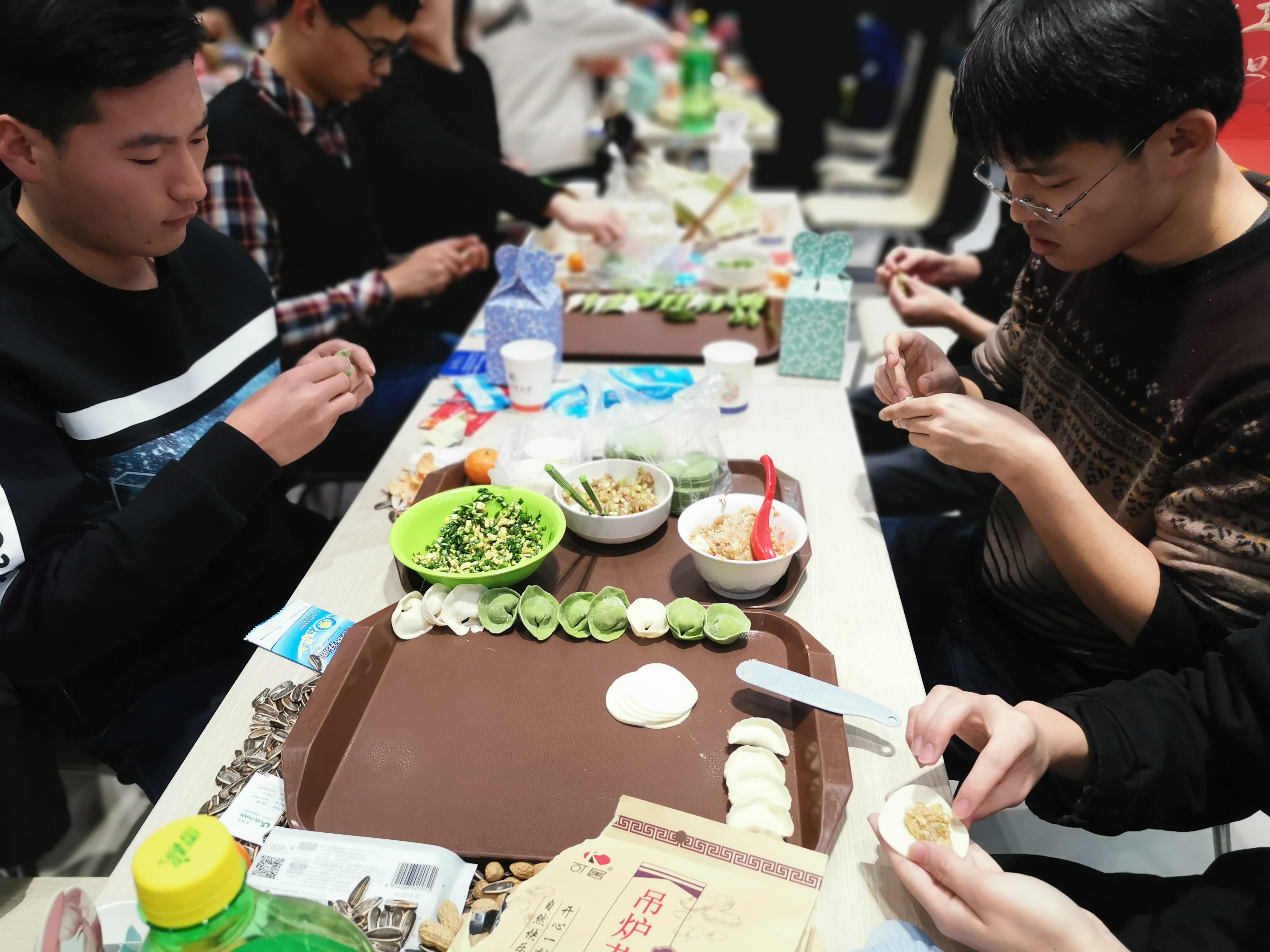 夜幕降临,万众瞩目的跨年活动拉开帷幕。跨年团圆餐在两校区学生餐厅拉开帷幕,best365官方网站登录入口师生领取了饺子皮和饺子馅后,围坐在一起,开始了自己的包饺子之旅。best365官方网站登录入口院长唐硕、党委副书记(主持工作)岳晓奎,副院长秦飞、张科,党委副书记常威威、王强以及班主任、辅导员、导师代表、学院办公室老师等来到现场,与同学们一起包饺子、唠家常,和同学们聊着这一年的学习与收获,表达对同学们新年的期许与祝愿。随着热气腾腾的饺子一盘接一盘地端上桌,同学们一齐举杯,共贺新年,现场气氛其乐融融。学校校领导与best365官方网站登录入口的同学们亲切交谈,表达学校对同学们的关心与爱护,了解学生心中所思所想,并对同学们送上新年祝福。同学们发挥奇思妙想,激情创作,各种形状的饺子诞生。有的饺子中包裹着硬币和花生,吃到的同学收获了大家真诚的祝福。团圆餐其乐融融,节日氛围浓厚。最后,在“包饺子大赛”、“倒念词语比赛”等形式多样的活动中,包饺子活动圆满结束。