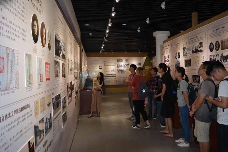 校史馆由校史厅、校友厅和放映厅三个部分组成,分别展出了西工大历史上不同时期形成的照片、史料、实物、模型等。在校史厅,讲解员带领同学们了解学校的发展史。从抗战时期的国立西北工学院,到华东航空学院师生从南京义无反顾的奔赴大西北成为西部大开发的先行者们;从古路坝灯火,到第一台机载计算机、延安一号,一张张照片,一段段历史,承载着西工大80年的风云变迁。同学们徜徉其中,仿佛与先贤对话、与前辈共鸣。