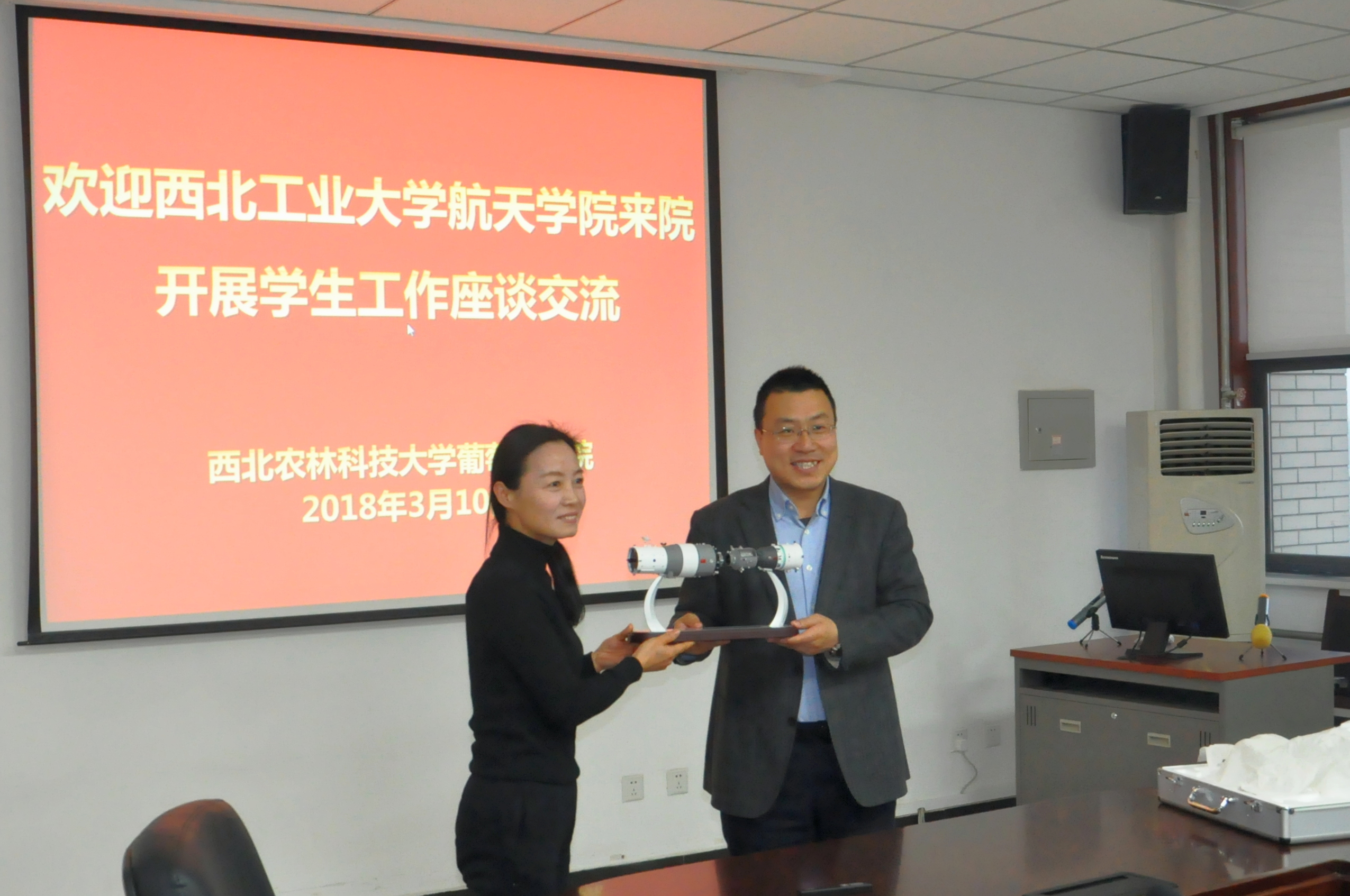 在研讨会的最后,张永福书记代表best365官方网站登录入口向葡萄酒学院赠送了神舟十号与天宫一号的交会对接模型,寓意两个学院从此可以亲密无间,共同前行;邓亚丽书记代表葡萄酒学院向best365官方网站登录入口赠送了学院自主酿造的李华牌葡萄酒,希望这份情谊可以绵长不绝。