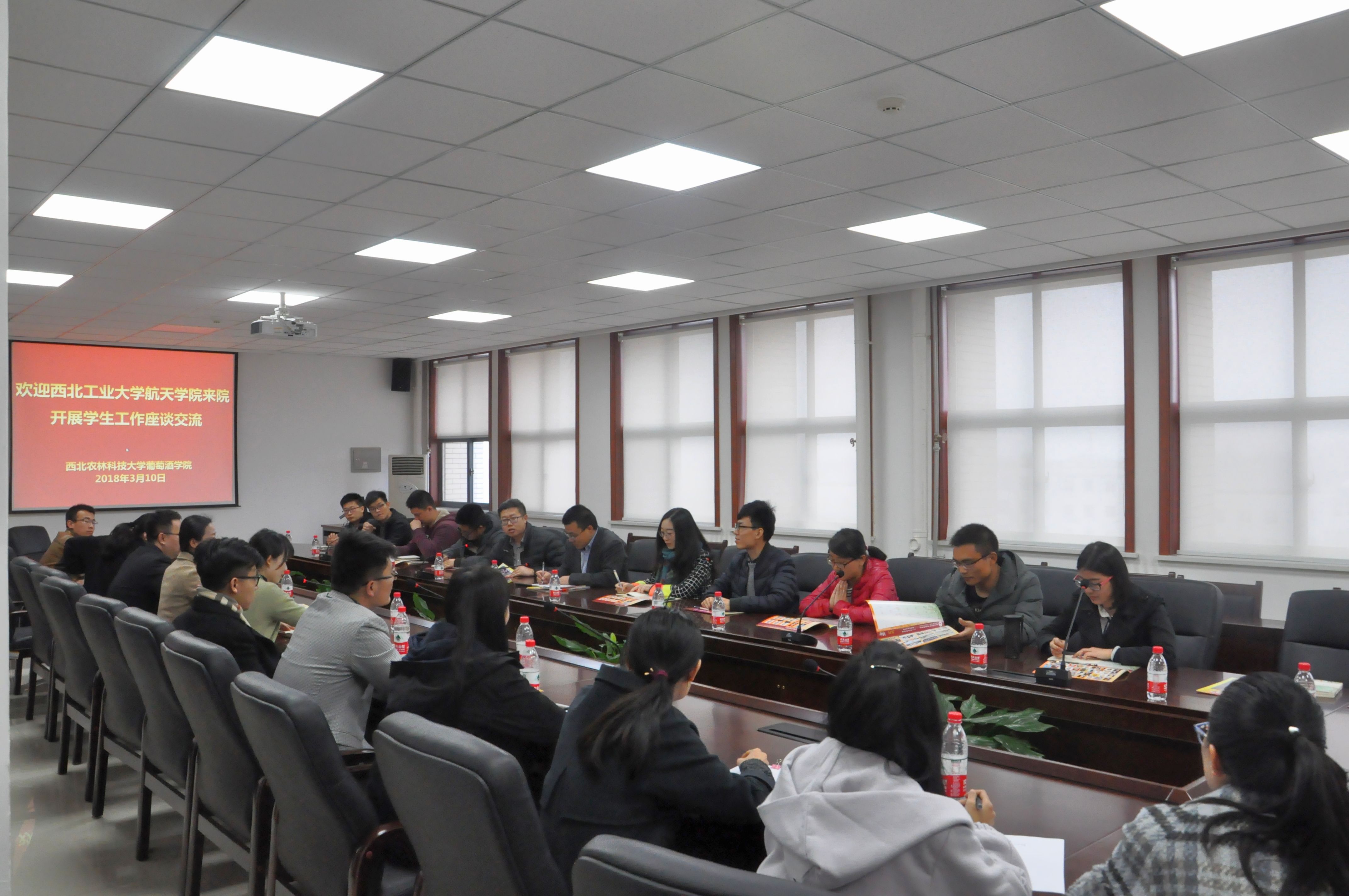 3月10日上午,在best365官方网站登录入口党委副书记张永福的带领下,学院团委书记赵通科、研究生辅导员罗淑娟等老师及学院研究生会骨干成员等共计十五人,赴杨凌与西北农林科技大学葡萄酒学院进行学生工作经验交流。