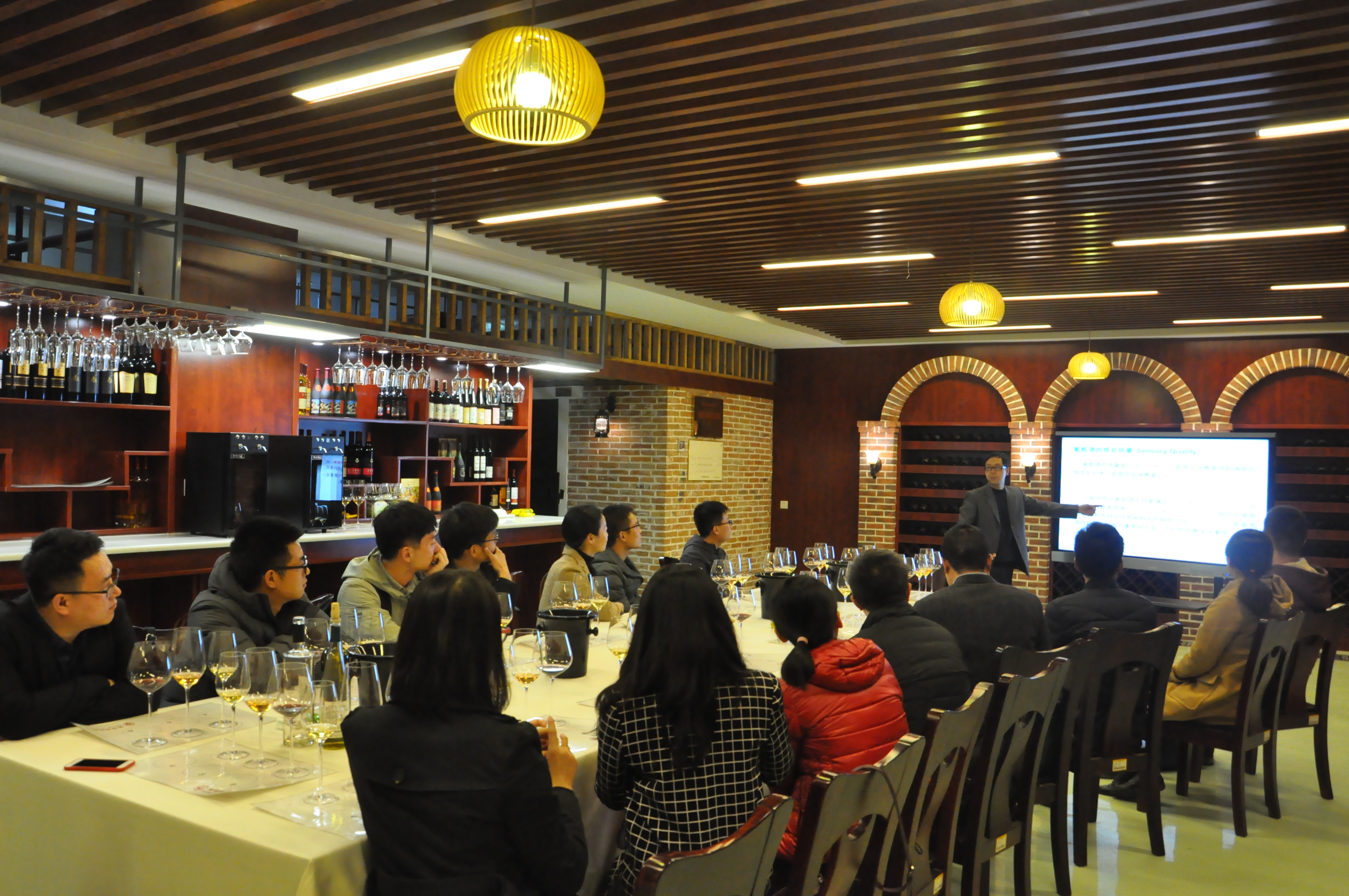 葡萄酒学院党委副书记邓亚丽、团工委书记赵星宇及研究生兼职辅导员薛雪等热情接待了best365官方网站登录入口参访团,并组织大家参观了酒窖、酿造工艺实验室等葡萄酒学院的特色设施。葡萄酒学院的地下酒窖中,陶永胜教授以三款不同的葡萄酒为例,为大家讲解了葡萄酒的品鉴知识。参访团成员王宇感叹道,“没想到葡萄酒文化如此迷人,里面还有这么多的知识,学习到了很多!”