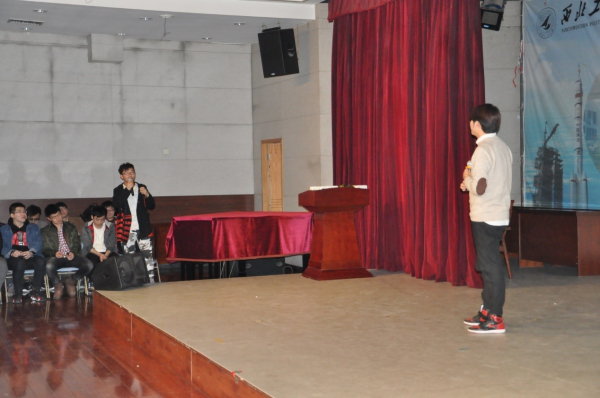 在分享环节过后,决赛正式开始,在比赛进程中,选手们思维缜密,发言幽默诙谐,使整个会场的气氛非常活跃,观众反响热烈,其中来自西工大的邢慕增同学说,这个游戏不仅考验逻辑思维和表达能力,更考验反应能力和推理能力,对提升自己的综合能力很有帮助。西电校研会主席丁威也表示,希望以这次比赛为契机,加强两校同学之间的交流与合作。