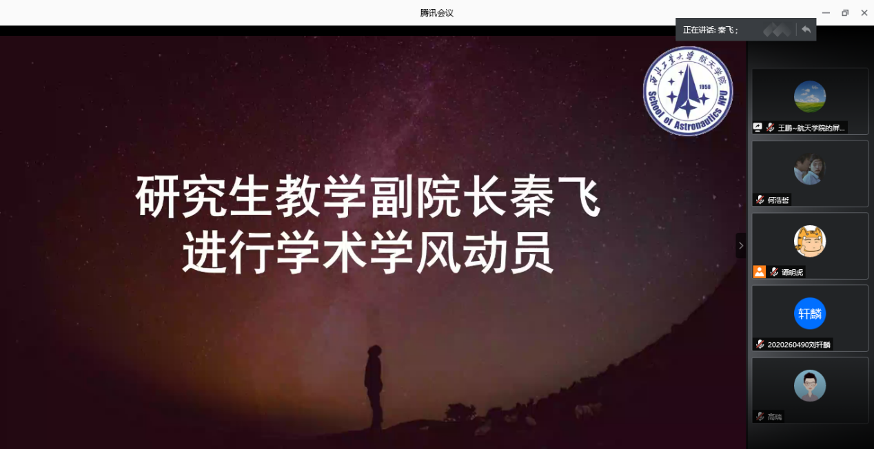 9月1日下午,best365官方网站登录入口举行2020级研究生新生见面会。由于疫情防控要求,今年新生见面会改为线上进行。见面会上,学院领导与负责老师同2020级硕博新生分享航天精神,探讨交流如何在best365官方网站登录入口进行科研学习。见面会由院长助理王鹏老师主持。
